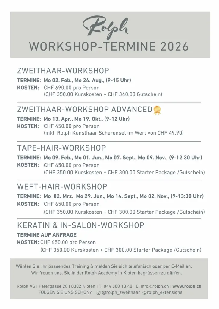 Hier finden Sie alle neuen Workshop Termine, die wir für Sie exklusiv in unserer Rolph Academy im Jahr 2024/2025 anbieten.